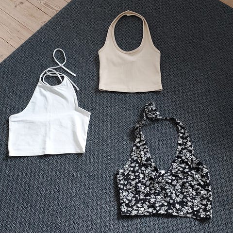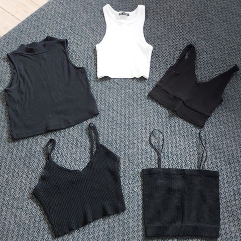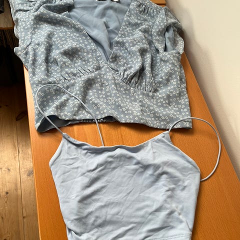 Vores datter sælger ud af sit tøj. Toppene er velholdte og fra Shein. Den blå er s, resten er xs. 15 kr stk. Alle er crop toppe. Fra ikke ryger hjem. Har flere annoncer med pigetøj.