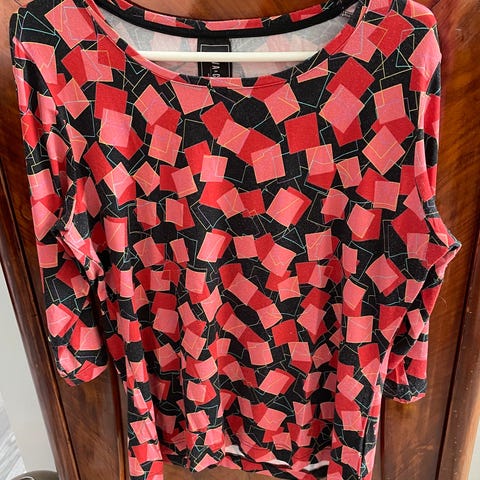 T-shirt, Gabriella K, str. 52, Sort og rød, Viskose og elasthan, Ubrugt, Med prismærke