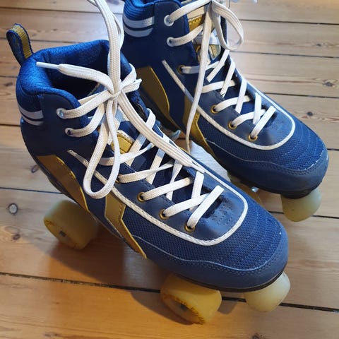 Medium slidte; snuden på højre støvle med stor skramme. Kører fint