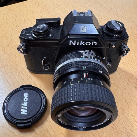 Nikon EM med NIkon zoom objektiv 35-105mm 3,5-4,5 ais