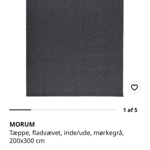 IKEA MORUM tæppe med målene 160x230 cm i grå farve. Fremstillet af materialer, der sikrer holdbarhed og komfort. Velegnet til brug i forskellige rum som stue eller soveværelse.
