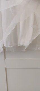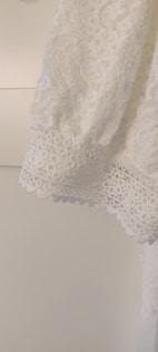 Sender ikke. Ny brudekjole,prøvet og ikke brugt. Hele brudekjolens længde,målt fra skulder og ned , er 1 m og 53 cm. Målt på blonden der på smukkeste vis deler overdel og skørt,er omkredsen 106 cm. Omkredsen på det smukke blonde ærme, er 40 cm. Det er en smuk brudekjole,overdelen for og bag er af de dejligste bløde blonder,der er V udskæring der ikke bliver for dyb,den lukkes bag på med en usynlig lynlås. Det lille ærme har en go længde,og igen med den bløde blonde . Skørtet er med en satin under del,der er dejlig blød,oven på er der 2 lag tyl. Brudekjolen har et blødt fald..det er en kjole man evt selv kan bygge videre på,kjolen har ikke slæb,og slør medfølger ikke. Det er en blød kjole gir sig/ strækker sig,det er ikke en stiv kjole. Jeg er 157 H og str 54, og den passer mig,jeg valgte dog en anden,denne var en gave,jeg kan ikke svare på spørgsmål ang mærke el nypris....sender ikke