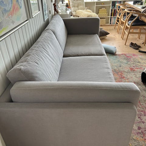 4 personers sofa. Design Foersom & Hiort-Lorenzen. Tegnet i 1998. Formstøbt koldskum og brændt orange Ben i matforkromet stål. B: 290 D: 82 H: 76. Siddehøjde 40. Alle mål i cm. Minimale brugsspor….. nypris ca 69.000.- kr