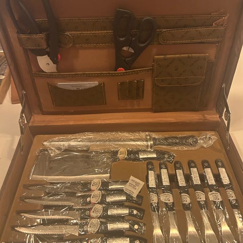 Jeg er desværre stødt på flere annoncer med sådanne knive her på dba. Sættene kan ikke købes i butikker eller i webshops nogen steder. De sælges af plattenslagere på markeder og på rastepladser. Ved første øjesyn ser de mægtig fine ud, men når du får pakket dem ud, bliver du slemt skuffet.