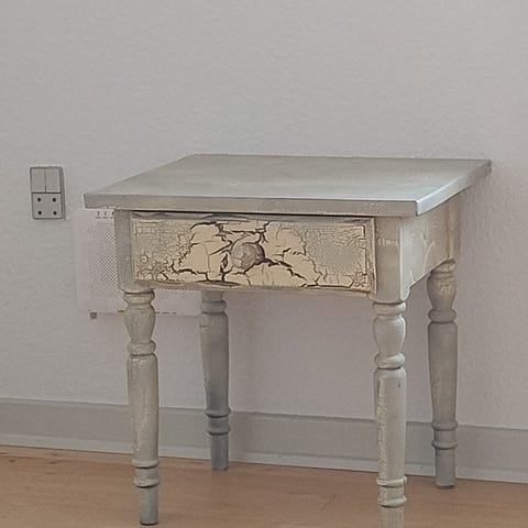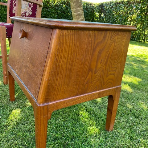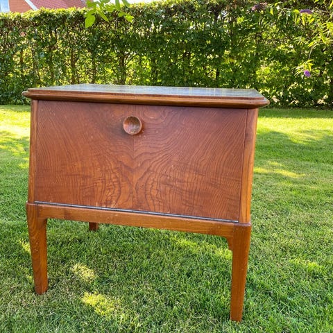 Et antikt natbord med to skuffer og udtræk til et krus eller glas sælges. Det er et arvestykke fra familien. Den nøje alder kendes ikke. Meget flot design. Har slidtage på borpladen. Se billeder.