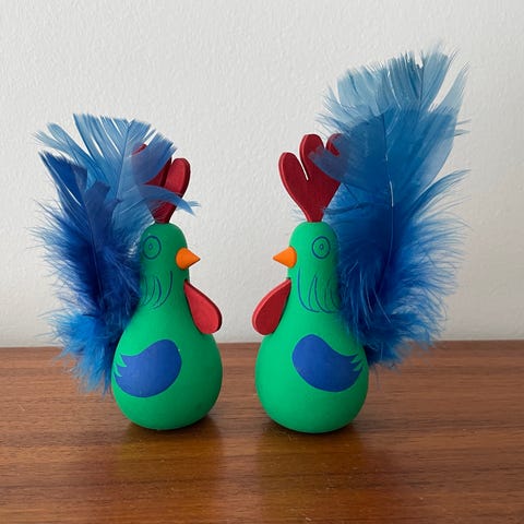 .Retro påskehøns fra Svenske Guldkroken. Er I fin stand stadig med mærkat. Den ene har dog en lille smule afskalning indvendig. Se billede. Højde 18 cm bredde 12 cm. Kan sælges separat