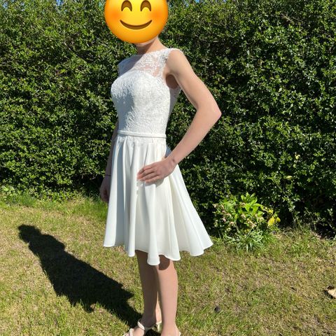Lara konfirmationskjole, str 34, rigtig fin kjole, brugt 1 gang, mangler en knap på det ene ærme, købt for 2.975kr