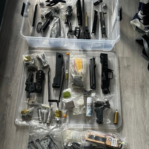 AK47/74: Cyma CM.050A (Klon af AK74 (AIMS-74)) i tactical udgave. Kræver 8,4V batteri, anbefaler dog at bruge 9,6V. Lige under 1,69 J sidst den blev testet. I metal. En lille arm udenpå er knækket men ellers fint. Ironsights er limet fast og blowback deaktiveret så den larmer mindre. Dertil High Cap Mag, 4x Mid Cap Mag, AK Rail Mount, Swiss Arms Platinum Series, 0,28g 6mm BB, ca. 1500 stk. Der er også batterier men tvivler på de holder særlig meget strøm.