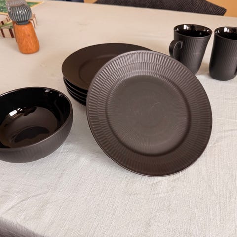 Royal Copenhagen sort riflet tallerkner og kopper / krus