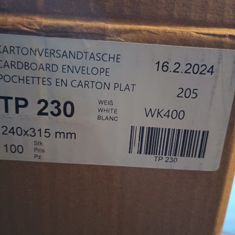 25 karton kuverter, 37x54 cm, 21 karton kuverter, 32x45 cm,