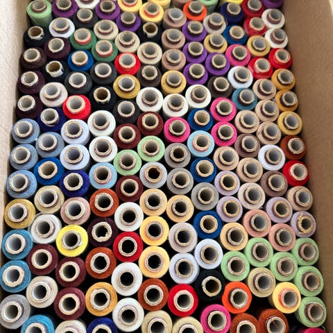 Hver rulle består af 45,72 meter sytråd (måske lidt mindre af den orange).