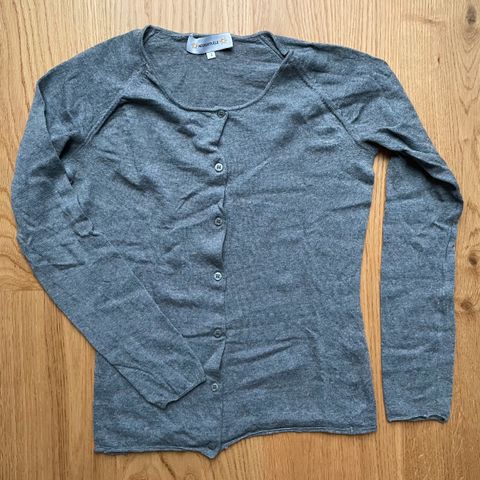 Månestråle grå uldcardigan i str. 2 (passer xs). Style: Danielle. 100% extrafine uld. Næsten som ny.