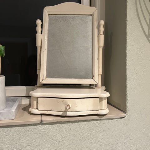 Sødt lille romantisk spejl til sminkeborde, toilet bordet eller sengebordet. 150kr.