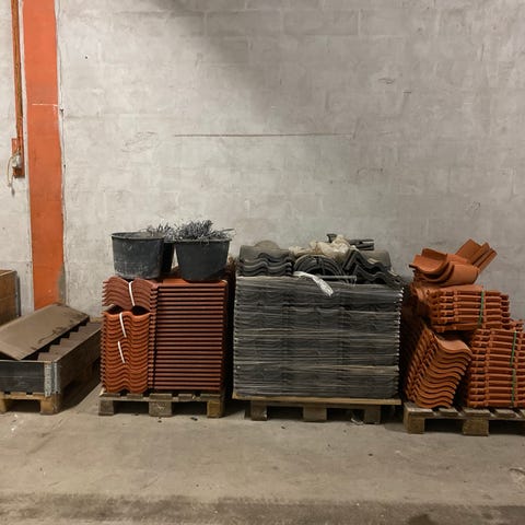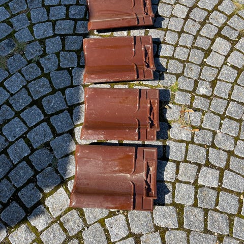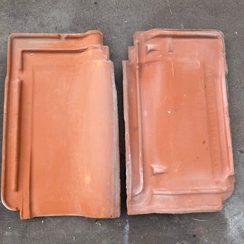 Tagsten, Monier - Randers Tegl, b: 23,9 l: 41,5, Sælger 40 brugte røde Økonomi vingetegl (normalformat) fra Randers Tegl - Monier, som er i overskud efter isætning af vinduer i taget. Teglene har været brugt i 2 år og er i god stand.