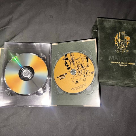 DVD, Matador m,m, Hele serien om Matador + opslagsbøger om hvad der foregår i Korsbæk og hvilke personer der er med , flotte bøger som er fuldstændig uden spor af brug , god underholdning til de mørke vinter aftener, og til julen der stærkt nærmer sig.