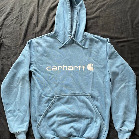 Hættetrøjen er prøvet på men tags er stadig på trøjen.