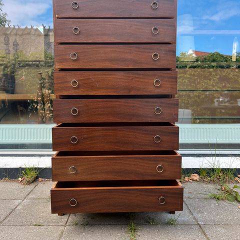 Utroligt smukke fritstående dobbelt skænke i teak med bar, spejl, bestikskuffer og hylder, begge i flot brugt stand uden skader.