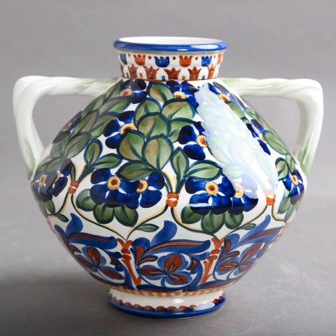 Fajance, kande med stjert-håndtag, nr. 187/179, "Blaa Cenerarier", designet af Harald Sloth-Møller i 1903. Fin stand, med en smule lyse overfladekrakeleringer, ingen revner eller afslag.