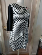 Kjole er 93cm lang og 104cm omkring brystet plus stræk