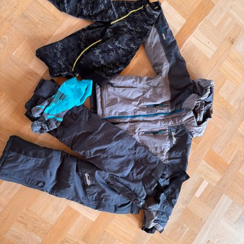 Dejligt skisæt, nok mest til en pige. Skijakke og skibukser i neonfarverne lyserød og grøn. Fungerer perfekt