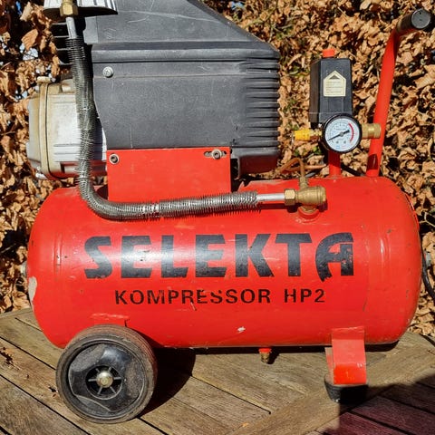 Lydsvag kompressor til kompressorrens til pillefyr, meget lydsvag,men desværre slår der gruppen fra ved start,så sælges som reservedele og sælges som defekt.