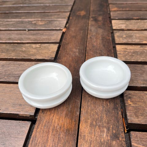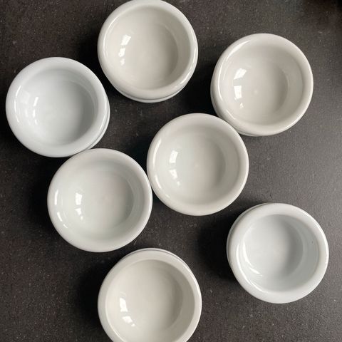 tre hvide pocelæm smørskåle / saltkar fra Pillivuyt