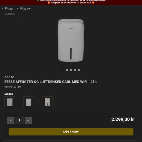 Eeese 2-1 Affugter & Luftrenser 20L Hugo 100m2.