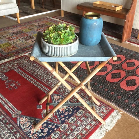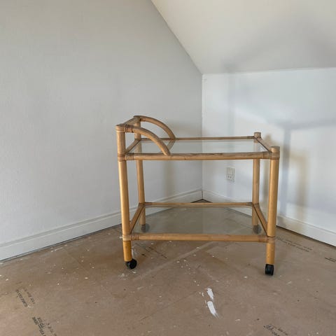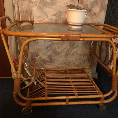 bambus rattan flet barbord rullebord anretterbord sidebord hjørnebord entremøbel entre stue kolonihave sommerhus boheme romantisk blomsterbord bord hjul