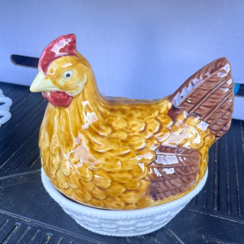 Hønen har en højde på 14 cm og en længde på 14,5 cm.