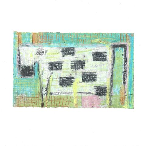 Billedet Blue Pig fra serien Zo Zoo. Tegnet af kunstneren Tine Tomsdatter i vinteren 2015/2016 med olie kridt.