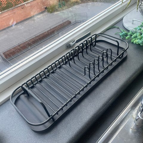 Helt ny opvaskebakke fra Ikea i stof. 44x36 cm. Med lille krog så den kan hænge. Mørkegrå. Kan bøjes sammen og fylder derfor ingenting.