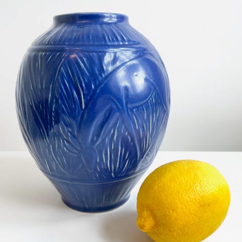 Humlebæk Øre Skål i Gul/Brun glasur med flotte dekorationer og flotte dekorative ører.