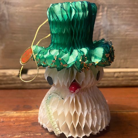 Gammelt smukt papirpynt kaldet "Honeycomb paper ornaments".