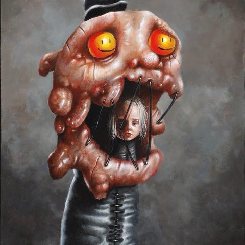 Mål 40 x 30 og 8 cm dyb. Et af kunstnerens tidlige malerier fra 2012
