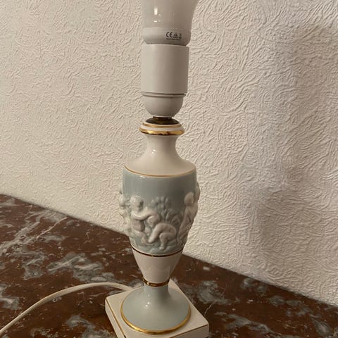 Skøn antik vintage Capodimonte bordlampe , porcelæn og støbt bronze.