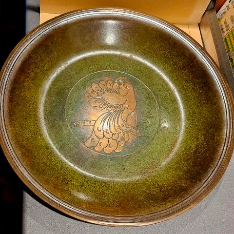 Flot bronzefad med figur i midten / bronze skål Stempel i bunden h.f.