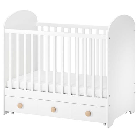 Den ene side af tremmesengen kan afmonteres, når barnet bliver større og selv kan kravle op i eller ud af sengen.