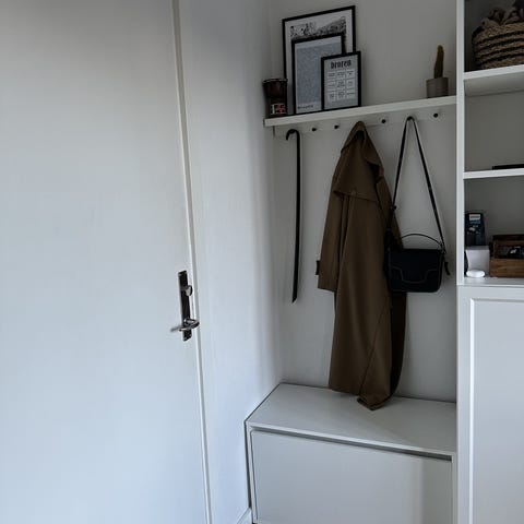 Elegant knagerække med hylde. Finder let sin plads i køkkenet, på badeværelset, børneværelset eller mange andre steder i hjemmet.