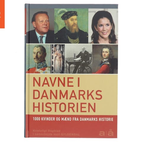 Navne i Danmarks historien, Gyldendal, emne: leksikon, Bogen egner sig til lystlæsning for hele familien og som praktisk opslagsbog i f.eks. klasselokalet. 1000 kvinder og mænd fra Danmarks historie. Bogen er helt NY.