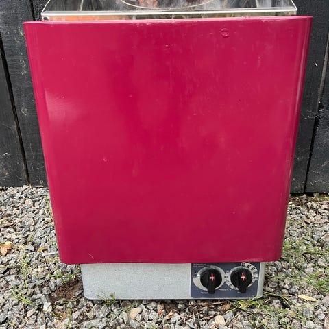 Fin brugt saunaovn Mærke Harvia Made in Finland Effekt på 6,0 Rød. Er på Fanø indtil tirsdag den 27 januar 2026