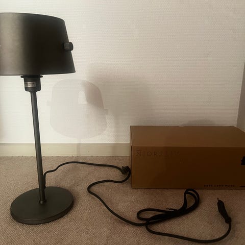 2 Super flotte og særdeles velholdte kvalitetsbordlamper fra det danske designfirma Njordliv. Bordlamperne er af sortlakeret metal og anvender en pære af type E14 med lille fatning og har en 2 m lang sort stofledning med afbryder.