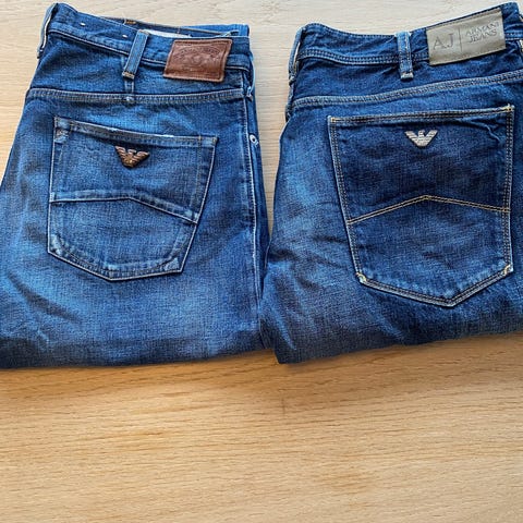Jeans, Armani str.33, str. 33, Sorte, Blød denim/bomuld, God men brugt, Fine Armani - brugte men fejler ikke noget.