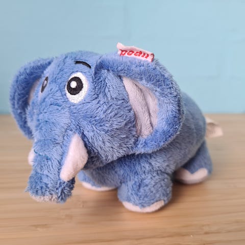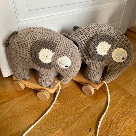 Længde Bodil elefant, 30 cm. Højde 17 cm.
