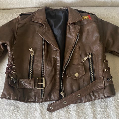 Unikke børne læderjakker str S og Str M .Brugt 1 gang, Pris pr. stk Kan afhentes i 5210 Odense NV,. Tror small passer en ca. 6årig og M en ca 8årig.