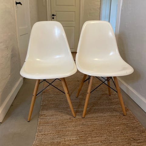 2 stk Charles Eames stol Sea foam Green Glasfiber