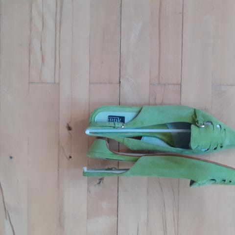 Lækker sko i ruskind med flotte stikninger og metalspænde, hælhøjde 6,5cm. Jeg bruger str. 37 og den passer mig, selvom det er en 36. Skoen er kun brugt få gange og fremstår, som næsten ny.