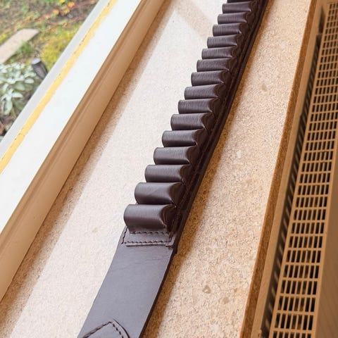 Der er plads til 25 patroner, så man kan have en æske patroner siddende let tilgængeligt og bekvemt om livet.