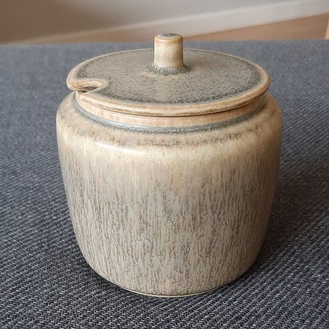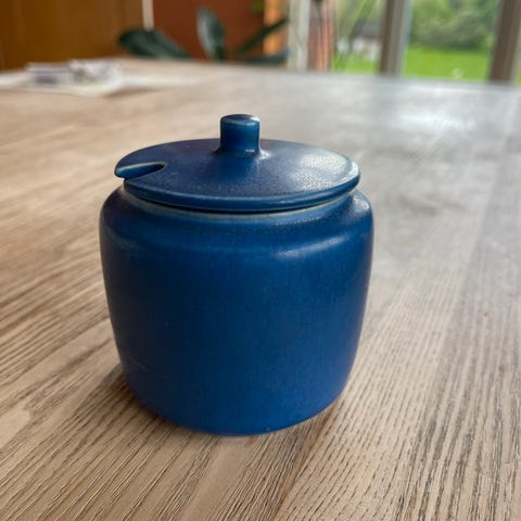 Marmeladekrukke, højde med låg 11 cm, diameter 9 cm, mærket 1194/1, pris 975 kr