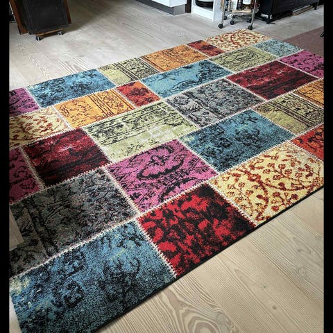 Andet tæppe, Smukt sælskinstæppe i patchwork, FAST PRIS