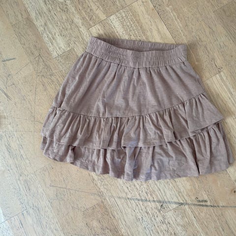 Super sød og blød armygrøn/grå nederdel i 4 lag, med blødt tyl som falder flot og let - en rigtig lækker nederdel.